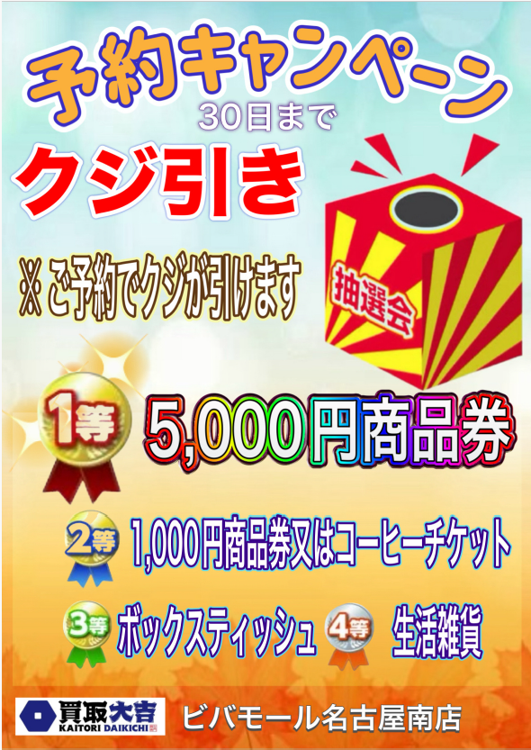 他店ではお値段の付かなかったものでも、「何でも一点一点丁寧に無料で査定」いたしますので、ご自宅にあるご不要なものは買取大吉 ビバモール名古屋南店にお任せください!